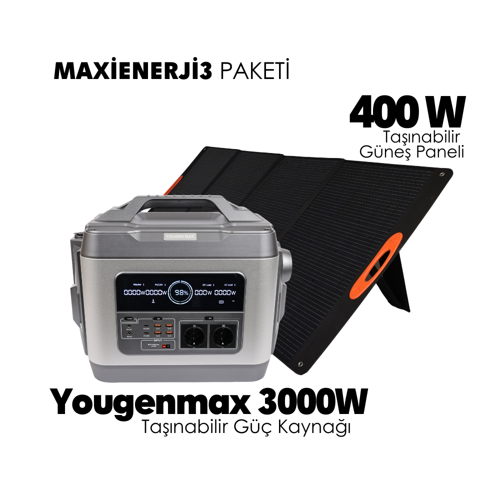 Maxi Enerji 3 Paketi – Youngenmax 3000W + 400W Güneş Paneli