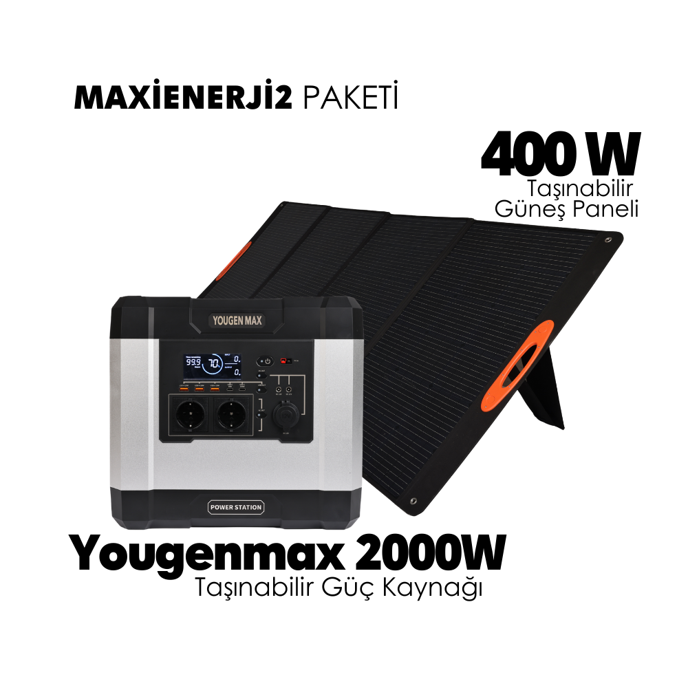 Maxi Enerji 2 Paketi – Youngenmax 2000W + 400W Güneş Paneli